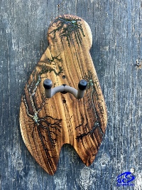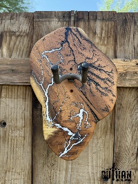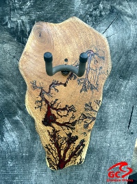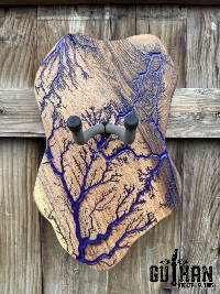 ►INSPIRATION: The creative design behind each guitar hanger is based on the musicians I’ve come to admire throughout my lifetime that made an impact and inspired me to play guitar. It’s my token of appreciation for creating great music of my generation. Keep ROCKING the world! ►DISCLAIMER: Guihan Guitars is not affiliated with, or endorsed, sponsored, or supported by any professional musician artists. The names and images are merely for descriptive purposes only. ►DONATION: Guihan Guitars donate part of the sales of live edge guitar hanger to Alice Cooper Solid Rock. A non-profit organization that has a mission to make a difference in teens’ lives by helping them meet the spiritual, economical, physical and social needs. Thank you for your support. Guihan Guitars donate part of the sales of guitar hanger fractal art to Sweet Relief Musicians Fund. A501-C3 nonprofit charity that provides services and financial assistance for all types of career musicians and music industry professionals. Thank you for your support. ►WOOD: Each live edge guitar hanger is uniquely hand-crafted and custom designed from weathered-down trees found around metropolitan Phoenix, Arizona. By acquiring these logs, it allows me to create 100% sustainable, re-purposed live edge wood art designs. Locally source and made in North Peoria, Arizona. ►FRACTALART: A process of applying 20,000 volts of electricity to the wood surface recreating a lightning strike in slow motion as well as unique abstract figures, tree and vein like shapes. It is sealed with epoxy inlay ink self-leveling high gloss U.V. resistant formula. ►EPOXYCOLORS: Angel White, Aqua Marine, Arizona Gold, Army Green, Black, Blue Metallic, Cardinal Metallic, Caribbean Blue, Desert Copper, Emerald Metallic, Golden Yellow, Gray Metallic, Hot Pink, Hunter Green, Neon Green, Orange Crush, Pearl White, Purple Metallic, Red Metallic, Silver Grey, Teal Metallic, Turquoise Blue. Other colors available upon request. ►OILFINISH: Hand rubbed Old Masters clear satin gel polyurethane and food grade oils to bring out the natural beauty of wooden surfaces. ►GUITARHARDWARE: The new design, known as the “Guitar Keeper”, has a deep cradle design that prevents the guitar from being improperly placed into the hanger. This ultimately provides a safer hanger for your instrument, as the guitar needs to be lifted 2 inches and brought forward to be removed. The pivoting yoke allows for Electric, Acoustic or Bass guitar headstocks to be cradled perfectly while still hanging straight. Made in the USA. ►ENGINEERING: Guihan Guitars researched and tested the use of proper hardware for mounting the String Swing guitar hanger to live edge wood materials. A threaded insert made of carbon steel zinc plated finished goes into predrilled hole and has internal threads. It offers a strong permanent thread to live edge hardwood and mount the guitar hanger yoke. Mounting hardware included with two drywall anchors and two 2-inch Phillips wood screws. ►MOUNTING INSTRUCTIONS: To mount on existing stud walls, drive the screws through pre-drilled pilot holes of hanger into wall using a Phillips screwdriver. If a wall stud is not found, mark the pilot holes on the guitar hanger using a Phillips screwdriver to push and turn the aluminum wall anchor clockwise until flush. Mount the guitar hanger with screws provided through the pilot holes and secure into drywall anchors. Guihan Guitars is not responsible for any damages to the musical instrument for any improper installation of the guitar hanger to the wall.It is the sole responsibility of the owner/buyer to properly install the guitar hanger to the wall. ►DIMENSIONS: Height: 15-16 inches Width: 8-10 inches Thickness: 1-1-1/4 inch ►COMPLETIONTIMELINE: Please allow 2-3 weeks to complete from the time order is received. ►ARTIST / LUTHIER: Garie Chavez has been designing live edge wood and fractal art since 2015. Patience, persistence, passion and attention to detail are the key ingredients to my work. My goal is for my clients to have a piece of art that they cherish, and know that it is truly one of a kind and made especially for them. Thank you for having my art in your home.