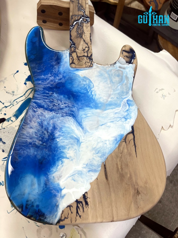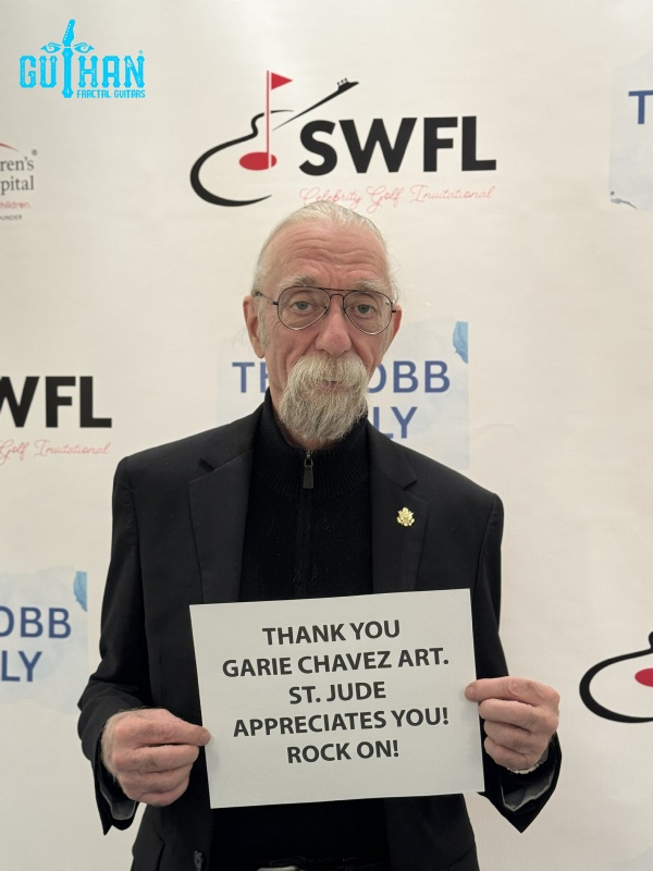 Guihan Fractal Guitars donated guitar wall art w/ ocean beach resin and fractal to St. Jude childhood cancer research silent auction to at 2025 Rahm Celebrity Golf Tournament in Ponte Vedra, Florida.
