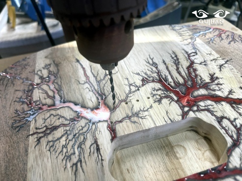 ►FRACTAL ART: A process of applying 20,000 volts of electricity to the wood surface recreating a lightning strike in slow motion as well as unique abstract figures, tree and vein like shapes. It is sealed with epoxy inlay ink self-