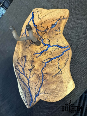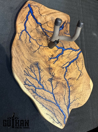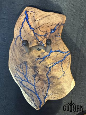 ►INSPIRATION: The creative design behind each guitar hanger is based on the musicians I’ve come to admire throughout my lifetime that made an impact and inspired me to play guitar. It’s my token of appreciation for creating great music of my generation. Keep ROCKING the world! ►DISCLAIMER: Guihan Guitars is not affiliated with, or endorsed, sponsored, or supported by any professional musician artists. The names and images are merely for descriptive purposes only. ►DONATION:Guihan Guitars donate to St. Jude Children’s Research Hospital. A 501-C3 designated nonprofit medical corporation which focuses on children's catastrophic diseases, particularly leukemia and other cancers. Guihan Guitars donate to Sweet Relief Musicians Fund. A501-C3 nonprofit charity that provides services and financial assistance for all types of career musicians and music industry professionals. Thank you for your support. ►LIVEEDGEWOOD: Each live edge guitar hanger is uniquely hand-crafted and custom designed from weathered-down trees found around metropolitan Phoenix, Arizona. By acquiring these logs, it allows me to create 100% sustainable, re-purposed live edge wood art designs. Locally source and made in North Peoria, Arizona. ►FRACTALART: A process of applying 20,000 volts of electricity to the wood surface recreating a lightning strike in slow motion as well as unique abstract figures, tree and vein like shapes. It is sealed with epoxy inlay ink self-leveling high gloss U.V. resistant formula. ►EPOXYCOLORS: Angel White, Aqua Marine, Arizona Gold, Army Green, Black, Blue Metallic, Cardinal Metallic, Caribbean Blue, Desert Copper, Emerald Metallic, Golden Yellow, Gray Metallic, Hot Pink, Hunter Green, Neon Green, Orange Crush, Pearl White, Purple Metallic, Red Metallic, Silver Grey, Teal Metallic, Turquoise Blue. Other colors available upon request. ►OILFINISH: Hand rubbed Old Masters clear satin gel polyurethane and food grade oils to bring out the natural beauty of wooden surfaces. ►GUITARHARDWARE: The new design, known as the “Guitar Keeper”, has a deep cradle design that prevents the guitar from being improperly placed into the hanger. This ultimately provides a safer hanger for your instrument, as the guitar needs to be lifted 2 inches and brought forward to be removed. The pivoting yoke allows for Electric, Acoustic or Bass guitar headstocks to be cradled perfectly while still hanging straight. Made in the USA. ►ENGINEERING: Guihan Guitars researched and tested the use of proper hardware for mounting the String Swing guitar hanger to live edge wood materials. A threaded insert made of carbon steel zinc plated finished goes into predrilled hole and has internal threads. It offers a strong permanent thread to live edge hardwood and mount the guitar hanger yoke. Mounting hardware included with two drywall anchors and two 2-inch Phillips wood screws. ►MOUNTING INSTRUCTIONS: To mount on existing stud walls, drive the screws through pre-drilled pilot holes of hanger into wall using a Phillips screwdriver. If a wall stud is not found, mark the pilot holes on the guitar hanger using a Phillips screwdriver to push and turn the aluminum wall anchor clockwise until flush. Mount the guitar hanger with screws provided through the pilot holes and secure into drywall anchors. Guihan Guitars is not responsible for any damages to the musical instrument for any improper installation of the guitar hanger to the wall.It is the sole responsibility of the owner/buyer to properly install the guitar hanger to the wall. ►DIMENSIONS: Height: 15-16 inches Width: 8-10 inches Thickness: 1-1-1/4 inch ►COMPLETION: Please allow 5-7 days to complete your celebrity musician custom guitar hanger fractal art from the order is received. ►ARTIST / LUTHIER: Garie Chavez has been designing live edge wood and fractal art since 2015. Patience, persistence, passion and attention to detail are the key ingredients to my work. My goal is for my clients to have a piece of art that they cherish, and know that it is truly one of a kind and made especially for them. Thank you for having my art in your home.